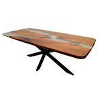Comandați acum masa dvs. din lemn masiv de nuc cu rășină epoxidică transparentă și finisaj satinat și adăugați o notă de eleganță și originalitate locuinței dvs.!