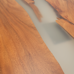 Rășina epoxidică transparentă completează perfect lemnul de nuc, punând în valoare frumusețea naturală a acestuia și creând un efect vizual spectaculos. Rășina transparentă permite observarea detaliilor lemnului, adăugând o notă de modernitate și originalitate piesei de mobilier.
