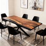 Masă din lemn masiv de nuc cu resină epoxidică fumurie